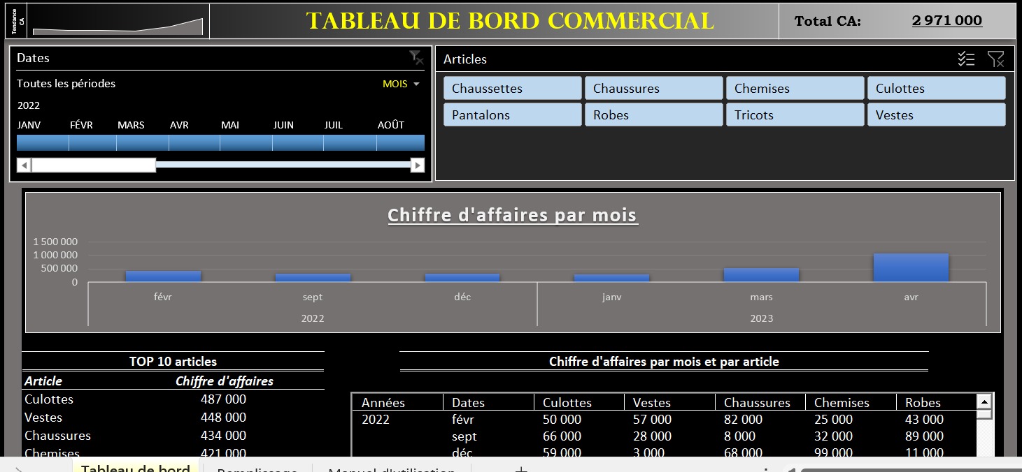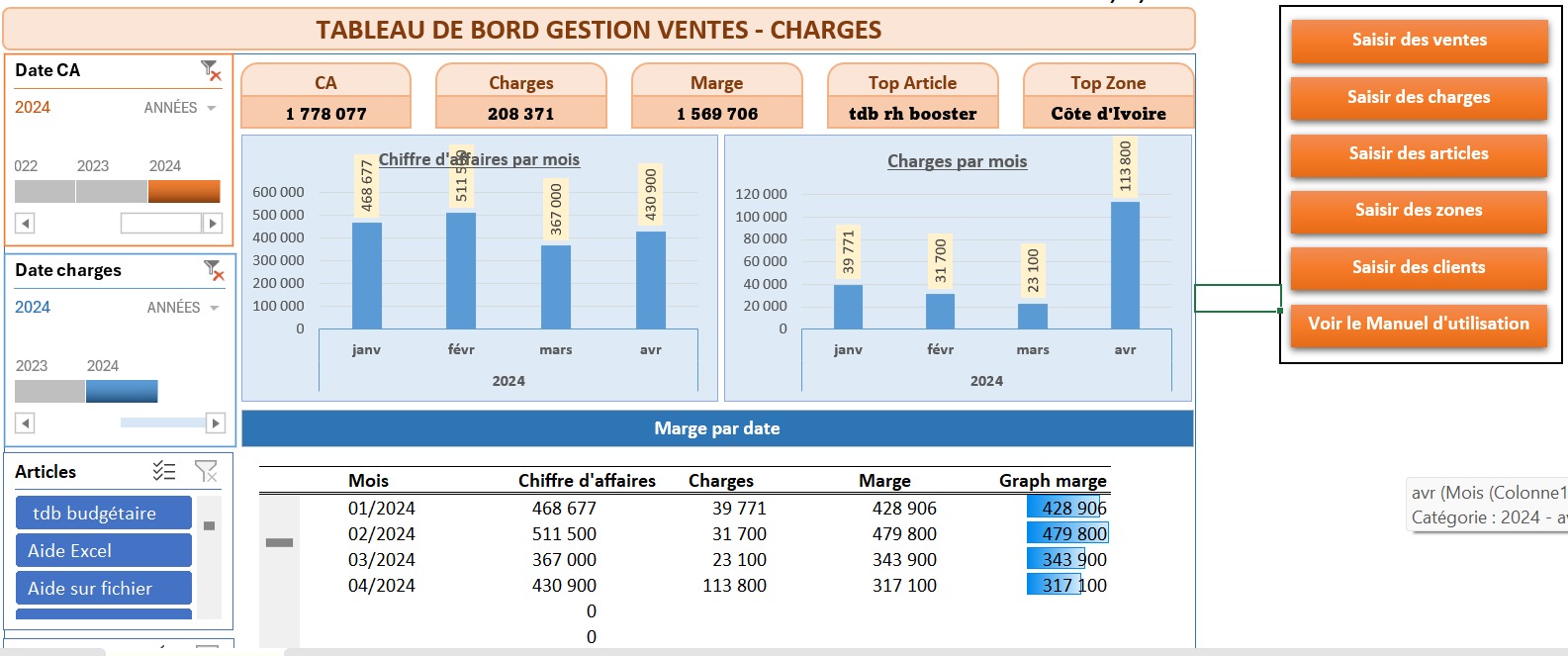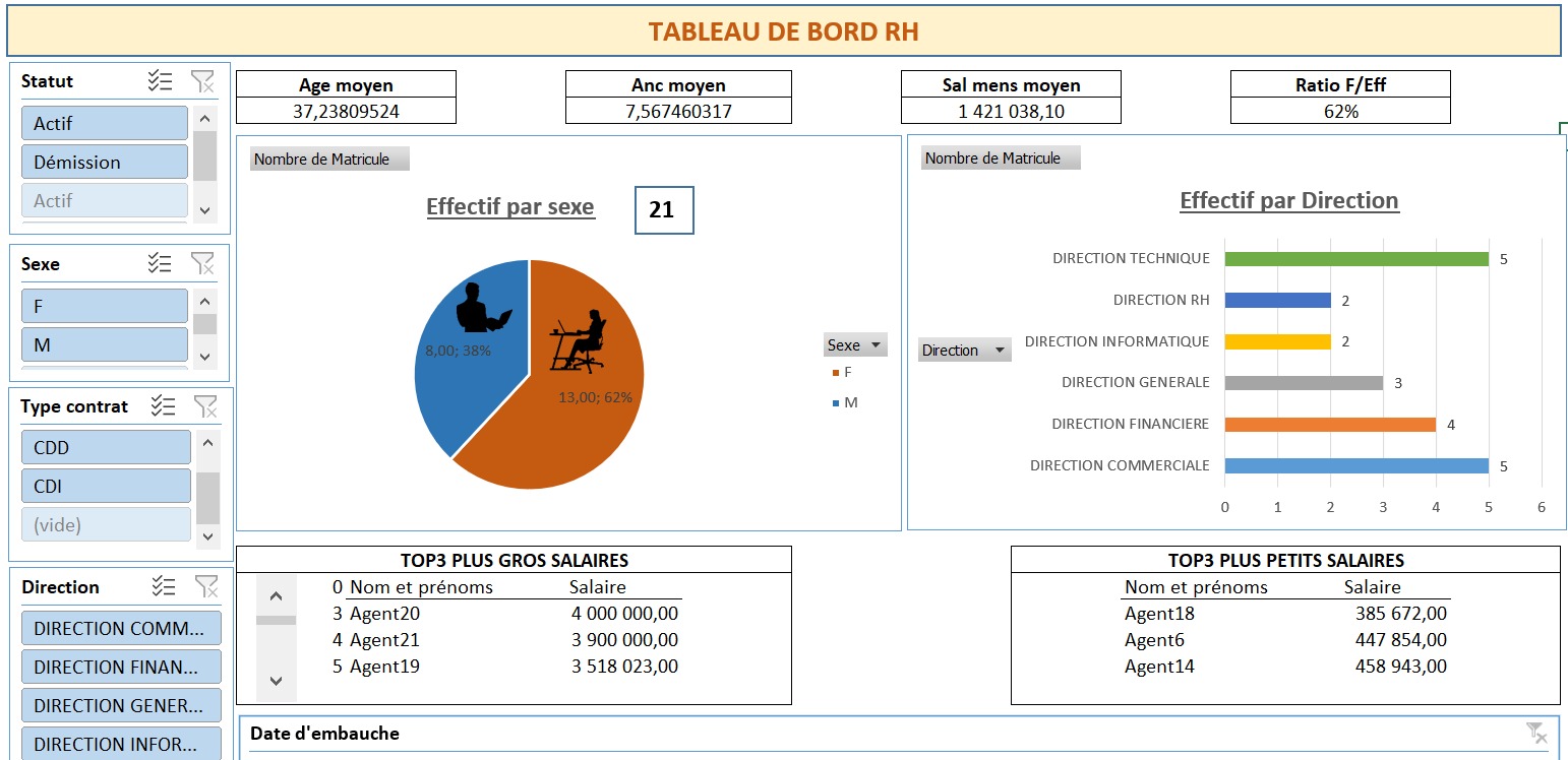 Grâce à la formation sur les tableaux de bord, j'arrive maintenant à monter mes propres tableaux de bord. Je dis aussi merci à Excelsolupro qui nous a donné gratuitement un tableau de bord RH. Ce tableau de bord m'est très utile pour le suivi de mon effectif à travers des graphiques et des ratios pertinents.